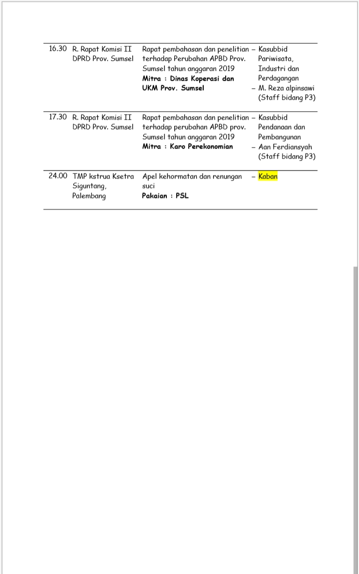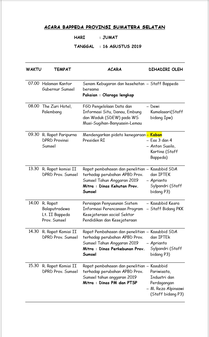 Agenda 16 Agustus 2019